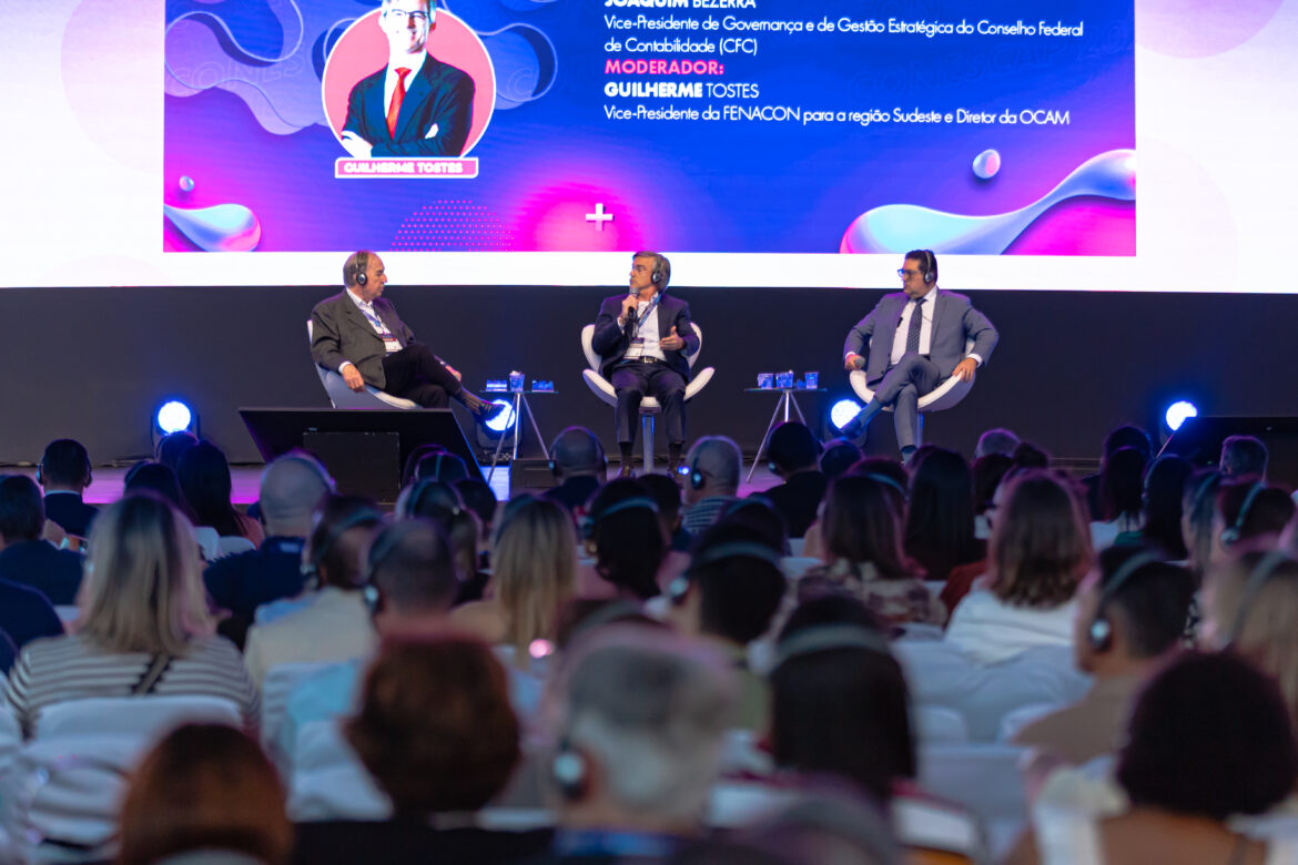 O painel “Conselhos e Comitês: Oportunidades para Contadores em Governança” reuniu Custódio Pereira e Joaquim Bezerra, com mediação de Guilherme Tostes, destacando novas possibilidades de atuação estratégica para profissionais da contabilidade.