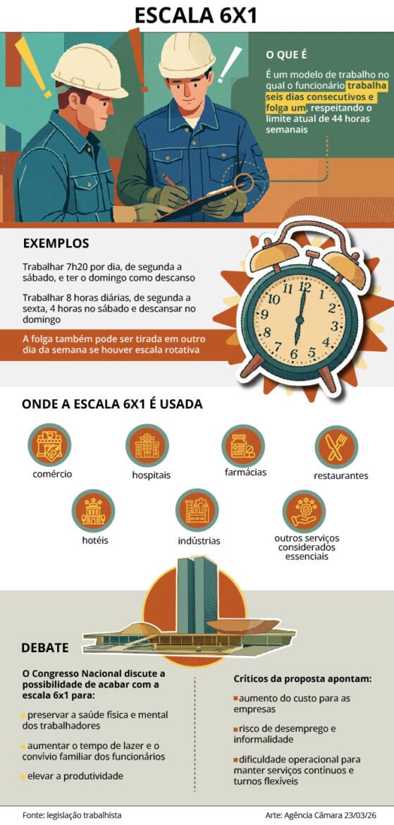 Na prática, as propostas de emenda à constituição acabam com a escala de trabalho 6×1