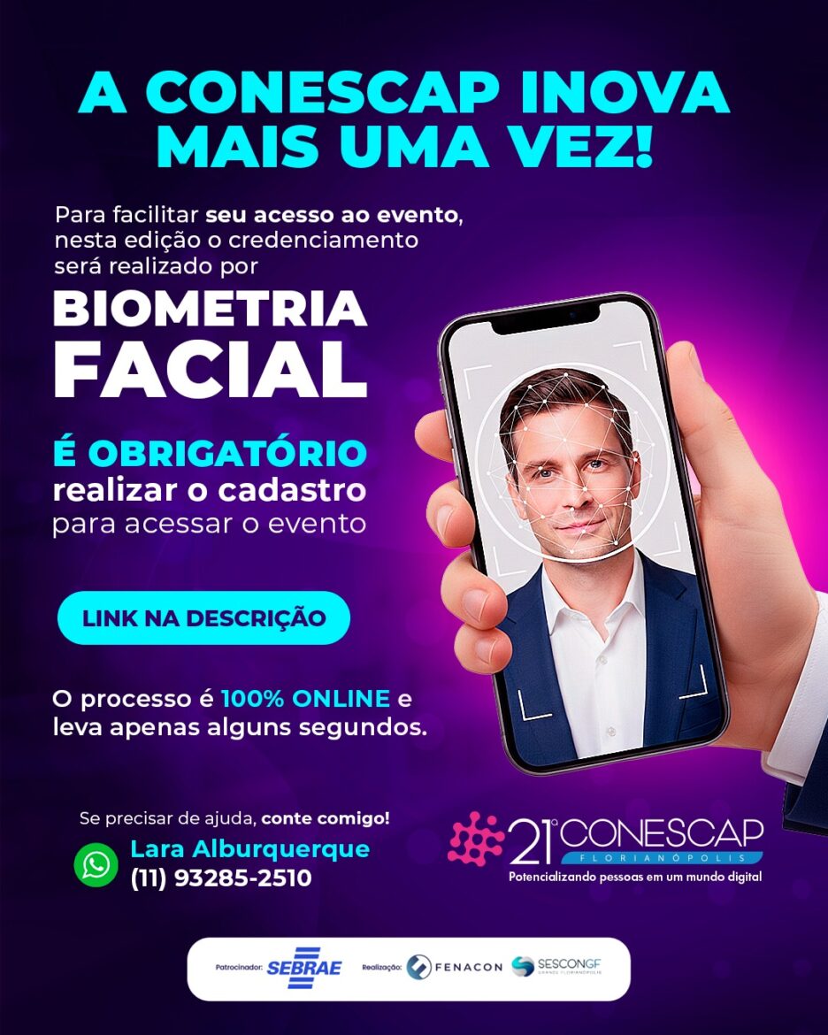 A CONESCAP 2025 traz uma inovação nesta edição: o credenciamento por biometria facial, que torna o processo de entrada mais ágil, seguro e totalmente digital.
