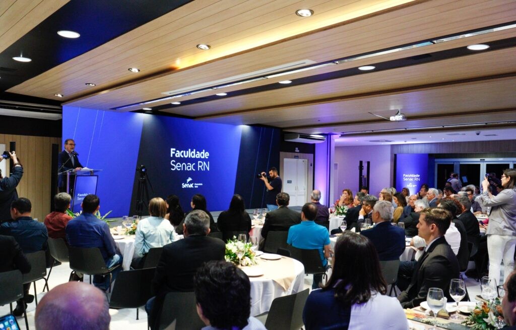 Em uma noite que celebrou um novo marco para a educação potiguar, o Sistema Fecomércio RN realizou, nesta terça-feira (23), a cerimônia de lançamento da Faculdade Senac RN, no Hotel Barreira Roxa, em Natal. O evento, que reuniu empresários, autoridades e representantes de órgãos vinculados à educação, oficializou a entrada da instituição na área do ensino superior, com cursos de graduação, pós-graduação e educação executiva voltados às demandas do mercado e sociedade.