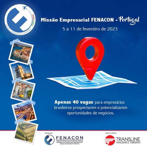 A Federação Nacional das Empresas de Serviços Contábeis e das Empresas de Assessoramento, Perícias, Informações e Pesquisas (FENACON) promoverá, em 2023, a missão Brasil-Portugal. A iniciativa ocorrerá de 5 a 11 de fevereiro do próximo ano.