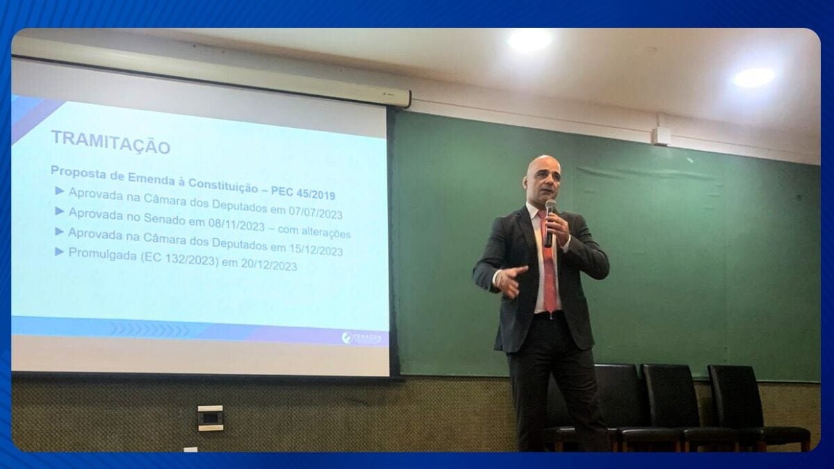 Na última sexta-feira (5) o presidente da FENACON, Daniel Coêlho, e o diretor de Políticas Estratégicas e Legislativas, Diogo Chamun, participaram do evento realizado pelo SESCON-AM sobre reforma tributária, no auditório da Fecomércio em Manaus.