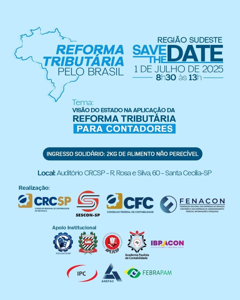 🚨 SAVE THE DATE – REFORMA TRIBUTÁRIA PELO BRASIL | REGIÃO SUDESTE🚨
