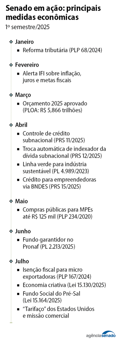 A regulamentação da reforma tributária sobre o consumo (Lei Complementar 214, de 2015) foi um dos passos mais importantes dados pelo Senado e que se tornaram realidade no primeiro semestre de 2025. Baseada no Projeto de Lei Complementar (PLP) 68/2024, a lei cria dois tributos — a Contribuição sobre Bens e Serviços (CBS), federal, e o Imposto sobre Bens e Serviços (IBS), estadual e municipal — com o objetivo de substituir cinco tributos atuais (PIS, Cofins, IPI, ICMS e ISS).