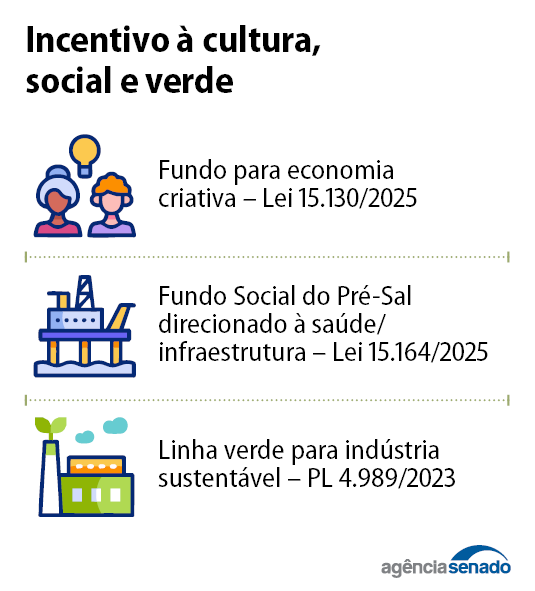 Já a Lei 15.130, de 2025, por sua vez, autoriza o uso dos fundos constitucionais de financiamento do Norte, Nordeste e Centro-Oeste para apoiar projetos da economia criativa, incluindo setores como música, audiovisual, moda e games. Na prática, a lei amplia o rol de atividades que podem receber recursos dos fundos e não cria gastos adicionais. Os negócios receberão tratamento preferencial, como já é estabelecido para pequenos produtores rurais e microempresas, por exemplo.