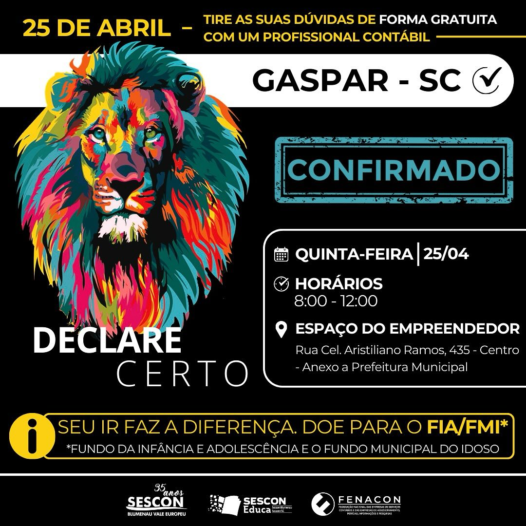 Está chegando o Dia D! Na próxima quinta (25/04), dia do profissional da contabilidade, o Sescon Blumenau Vale Europeu promove o evento DECLARE CERTO, nos shoppings PARK EUROPEU e NORTE SHOPPING, para esclarecer gratuitamente dúvidas sobre o imposto de renda em 2024.
