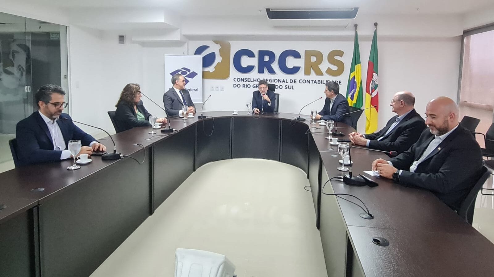 Na manhã desta terça (12.09), os presidentes das entidades da classe contábil gaúcha protagonizaram o “Diálogo Institucional – Modelo de Relacionamento da RFB com a Sociedade”, com o subsecretário de Arrecadação, Cadastros e Atendimento da Receita Federal do Brasil, Mario Dehon Santiago.