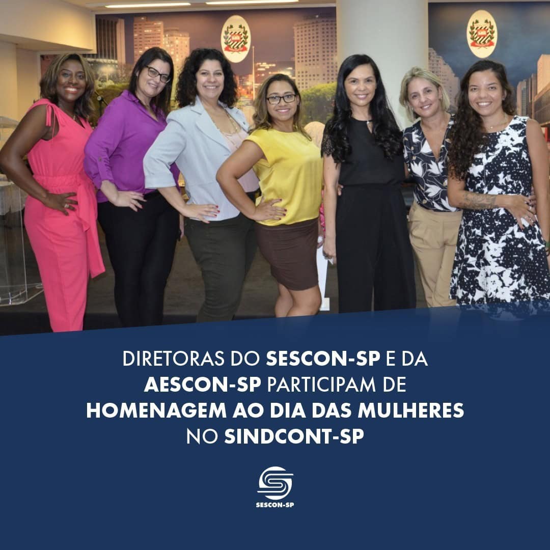 Celebrando o Dia Internacional das Mulheres, 08 de março, o Sindcont-SP realizou um evento alusivo que reuniu personalidades femininas da classe contábil. Entre as convidadas estavam as diretoras do SESCON-SP e da Aescon-SP: Andréia dos Santos Silva, Ana Carolina Zaparoli, Carla Chiomento, Fátima Macedo, Inez Lemos Lopes e Waldineia Santana.