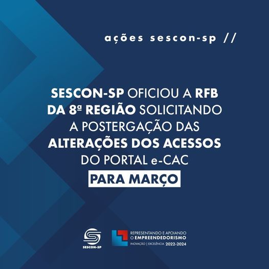 SESCON-SP oficia a Receita Federal da 8ª Região solicitando a postergação das alterações de acessos do portal e-CAC para março