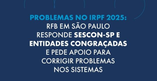 Problemas no IRPF 2025: RFB em São Paulo responde SESCON-SP e entidades congraçadas e pede apoio para corrigir problemas nos sistemas