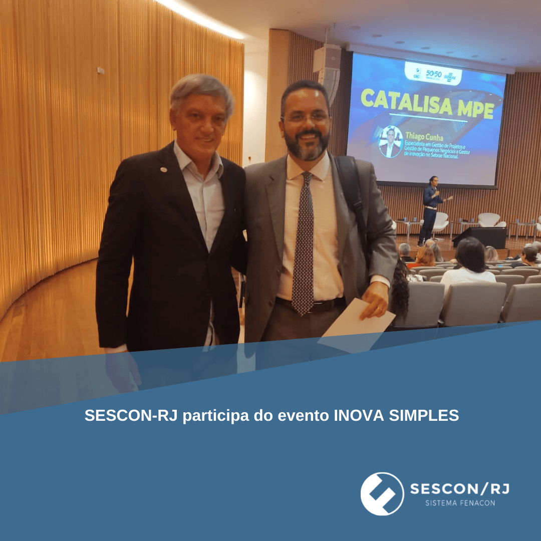 O presidente do SESCON-RJ, Renato Mansur, esteve nesta terça (17) no evento INOVA SIMPLES, promovido pelo SEBRAE e pelo CRC-RJ, que tratou sobre o novo regime especial que simplifica a abertura de empresas, o empreendedorismo digital e de start-ups.