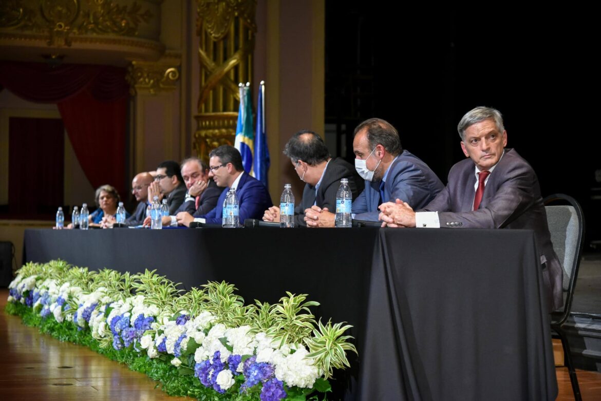 A composição da mesa contou também com a participação do Secretário de Fazenda, Nelson Rocha, representando o governador Cláudio Castro, do secretário estadual de Desenvolvimento Econômico, Vinícius Farah, do Vice-Presidente de Desenvolvimento Operacional do CFC, Joaquim de Alencar, e da Vice-Presidente de Controle Interno Vitória Maria da Silva, representando o presidente CFC.